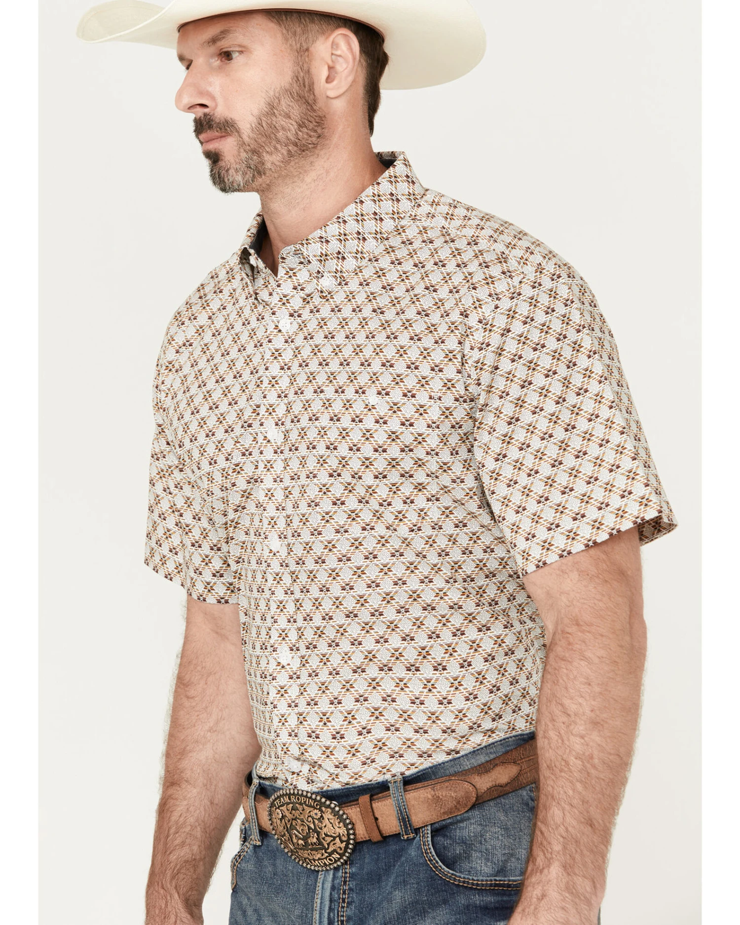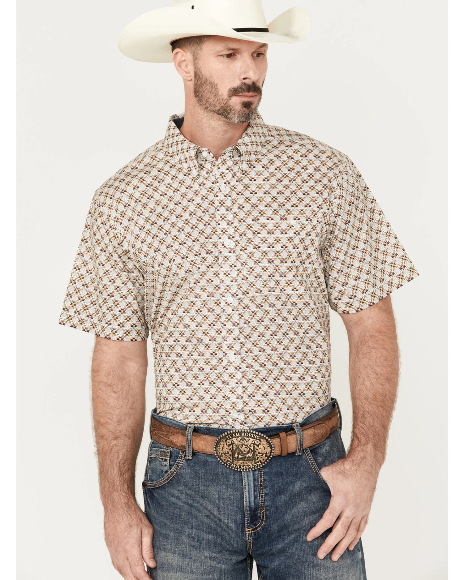 RANK 45 Men’s Buckaloo Print Short Sleeve Button-Down Stretch Western Shirt